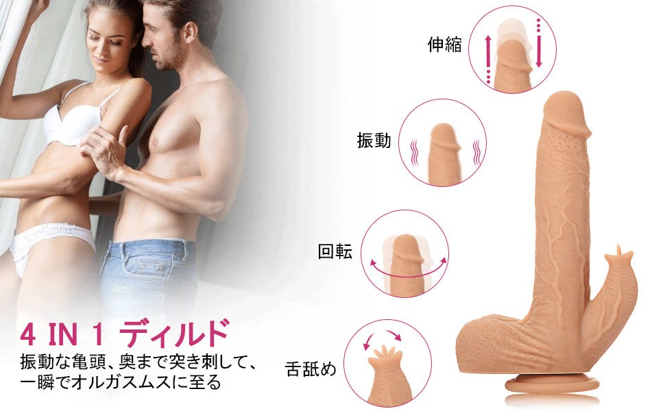 4つの機能を備えて、5種伸縮モード、最長伸縮の長さは5cmに達して、をマッサー7つの異なる振動モードがあり、乳首をマッサージでき、 7種舌舐めモードでクリトリスをケアできます。吸盤でピタッと固定でき、ポキポキ自在に曲げられ、もっと多くのラーゲを開発しましょう