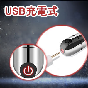 USB充電式 充電中はバイブのインジケーター が点滅し、フル充電するとライトが点灯します。電源ボタンを長押しすると電源のオン/オフが切り替わり、短押しすると振動モードが切り替わります。 |